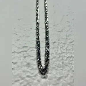 This elegant silver chain necklace adds a touch of sophistication to any outfit. Perfect for any occasion.