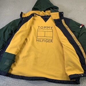 Tommy Hilfiger Jacket Mens XL Fleece Lined Hooded Snap Zip Cargo Pockets FLAWS