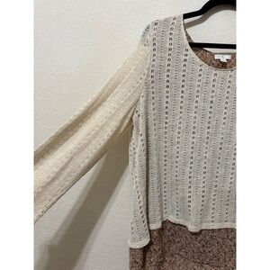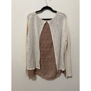 Catherines XL Layered Knit Crochet Sweater Top Floral Chiffon Hem Boho Peasant