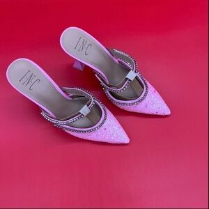 INC International Concepts Gylana Pink Glitter Mule Heels/Rhinestone Straps