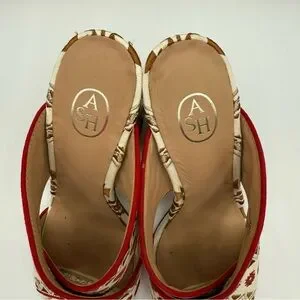 ASH Red Aztec Embroidered Padded Adel Round Toe Block Heel Slip On Heeled Sandal