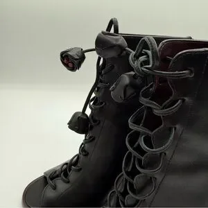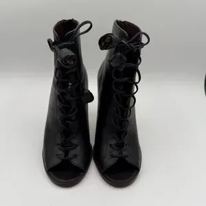 Coach Lena Black Lace-Up Peep-Toe Ankle Booties With Stiletto Heel Size 6B