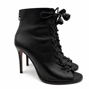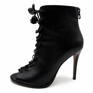 Black Lace-Up Peep-Toe Ankle Booties with Stiletto Heel