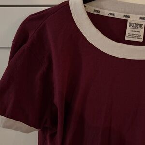 PINK Victoria's Secret Burgundy Tee with White Accents