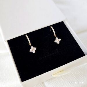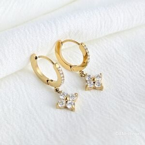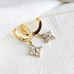Gold CZ Diamond Clover Hoop Earrings