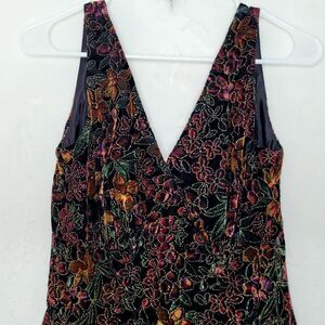 Vintage 90s Y2k Steppin Out Gold Embossed Floral Velvet Mini Dress Size 5