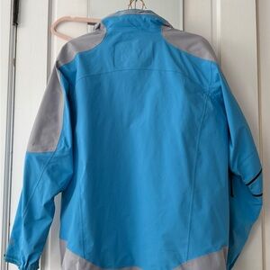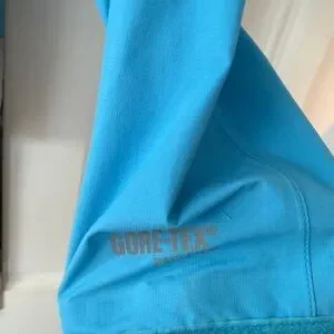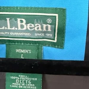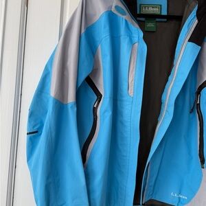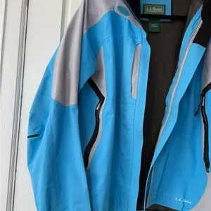 L.L. Bean women’s gortex jacket size large in vibrant blue and green. Perfect for outdoor adventures.