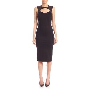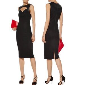 Alice + Olivia Black Lamb Leather Trim Open Front Pencil Sheath Midi Dress Sz 2