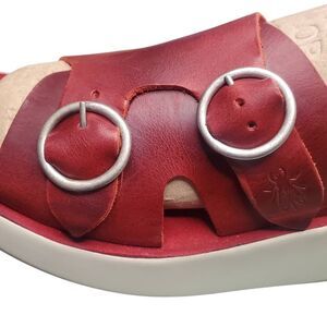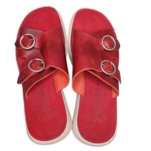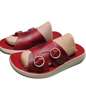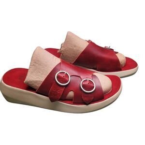 Rare Fly London Bait742fly Red Leather Double Buckle slip-on Sandals Size 40 US