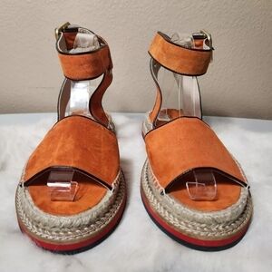 Andre Assous Cacia Orange Suede Platform Espadrilles Ankle Strap Size 6