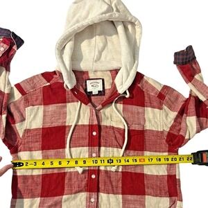 American Eagle Red Plaid Button-Up Hoodie Shirt Women's S Casual Flannel Grunge