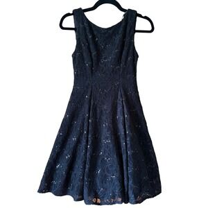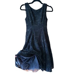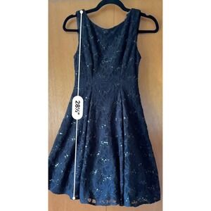 Keywords: B. Darlin dress, black dress, lace dress, sequin dress, party dress, cocktail dress, sleeveless dress, fit and flare dress, size 5/6 dress, women's dress, special occasion dress, formal dress, aline dress, black lace dress, sparkly dress