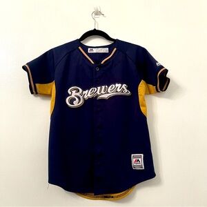 Milwaukee Brewers Jonathan Lucroy #20 MLB Majestic Kids Jersey. Blue jersey with screen printed numbers & logo.