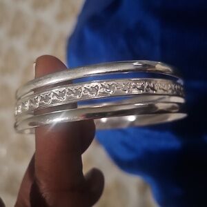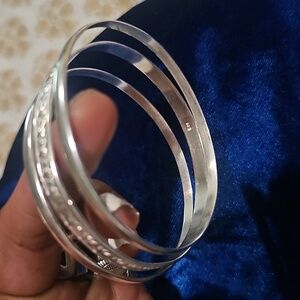 Elegant Sterling Silver Bangle Bracelets Set Of Three, (New), Ladies Size 8