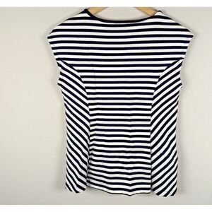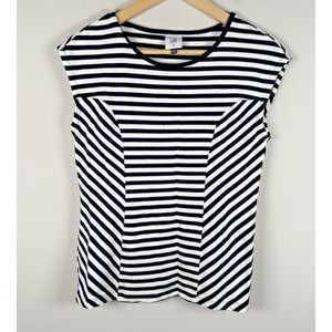 Cabi Illusion Shirt Womens X White Black Stripe Cap Sleeve Pullover Stretch NEW