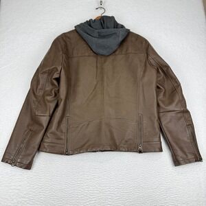 Levi Strauss Mens L Brown Faux Leather Hooded Bomber Jacket Quilted Lined
