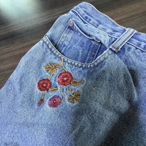 Y2K No Boundaries Embroidered Floral Jeans Juniors Size 13 Light Wash Denim