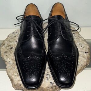 Magnanni Sergio Wingtip Oxford Dress Shoes Black Calfskin Leather 13974 Sz 10