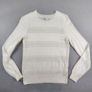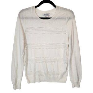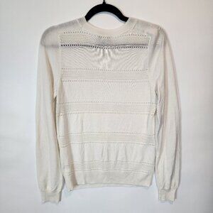 Athleta Women's Pointelle Crewneck Sweater Lightweight White Striped Sweater Sm