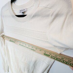 Athleta Women's Pointelle Crewneck Sweater Lightweight White Striped Sweater