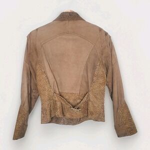 Vintage 80s North Pole Suede Leather Cropped Batwing Jacket Coat Animal Print M
