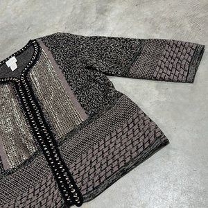 Chicos brand black w/tan n gold detailing sweater / cardigan /Size 0 / Q-66