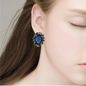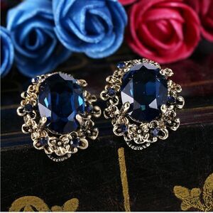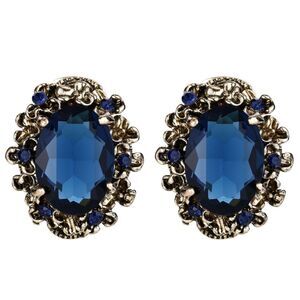 Antique Yellow Gold with Blue Sapphire Austrian Crystal Cameo Post Stud Earrings