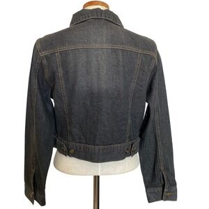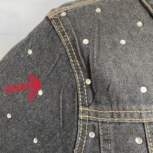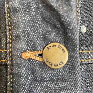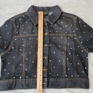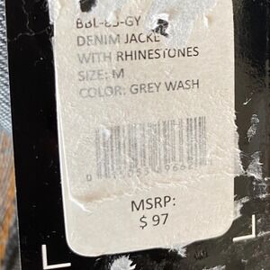 Bebe Rhinestone Denim Jacket Junior Size M Grey Wash Y2K Bling Sparkle Crop NWT