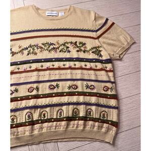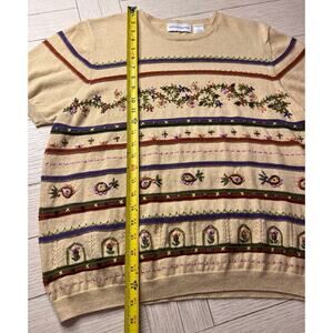 Alfred Dunner ladies short sleeve sweater w/ beaded & embroidered detail. Sz L. Ramie, cotton. Vintage