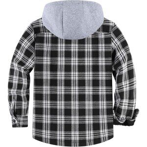 Men's Hooded White Black Sherpa Line Plaid Flannel Jacket Warm Winter Coat.