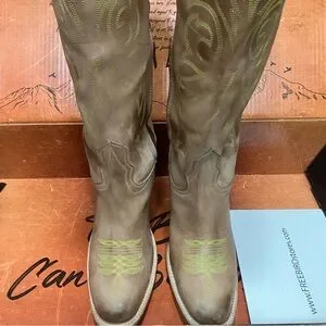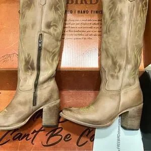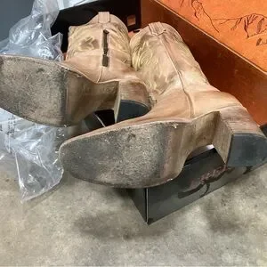 Step out in style with these brown tan cowboy boots. Perfect for adding a rustic touch to any outfit. These have been worn once and kept in a box since.