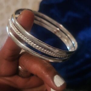 Elegant 925 Sterling Silver Bangles Set Of Three. New, Very Pretty Ladies Size 8