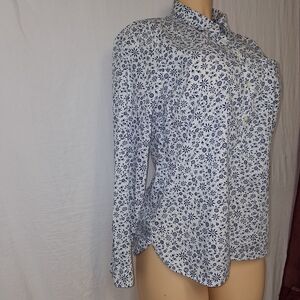 GAP women size S Stylish button-down with intricate blue patterns. Ideal for casual outings. Comfortable and chic. used in excellent condition