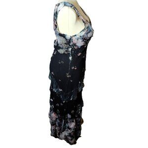 Komarov Floral Ruffle Chiffon Overlay Maxi Dress XL Made in USA VNeck Sleeveless