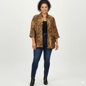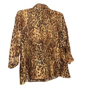 Stylish leopard print button-up shirt. Features a bold animal pattern.