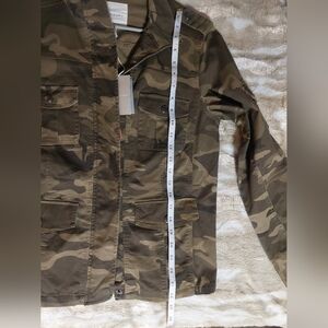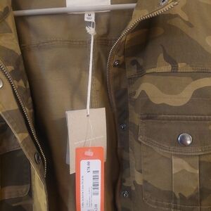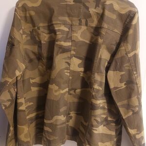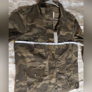 Stylish camouflage military style jacket with button details. Perfect for casual wear.