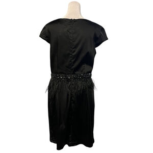 Alexia Admor Black Beaded Feather Fringe Waist Sheath Dress Size Large NWT