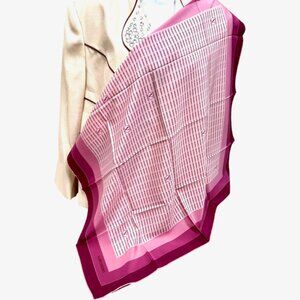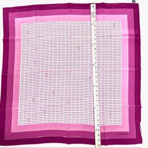 #59. Unused Beautiful classic piece Valentino scarf made from high quality 100% satin silk, featuring light purple lalender pink logo "V" printed all over and with hand rolledl hemming logo accents . Measuring 31"x31", this square scarf is perfect for adding a touch of vintage elegance to any outfit. Made in Italy