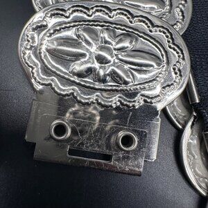 Vintage Western Concho Silver Tone Stretch Belt Floral Medallions Southwestern