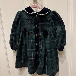 NWOT B.T. Kids 2T Girls Vintage Green Plaid Velvet Holiday Long Sleeve Dress