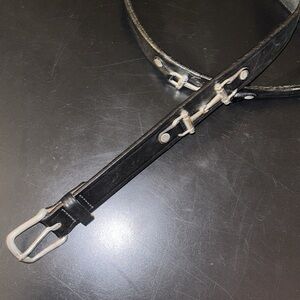 TORY Double snaffle silver horse bit, preowned black leather belt