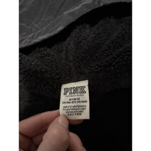 Pink Victoria Secret Womens Black Full Zip Medium Fleece Lined Jacket Hooded