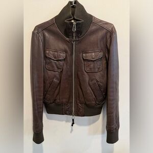 Miss Top Gun Brown Leather Bomber Jacket Size L Fully Lined
