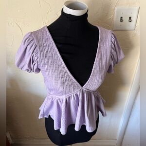 HYFVE Lavender Candy Purple Smocked Peplum Crop Top Puff Sleeve Open Back Size S