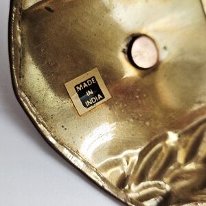 Vintage large copper cuff style bracelet. Appears to be handmade. Has embossed designs and a front medallion. Somewhat adjustable to fit most. Wrist shown is about 6.5" for reference. Marked made in India. Purchased from an estate and no visible maker's mark. Normal patina that could be cleaned if desired. Smoke-free home.
