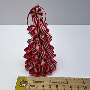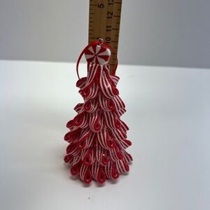 Peppermint Ribbon Candy Christmas Tree 14" Tabletop Decor and Ornament 4"