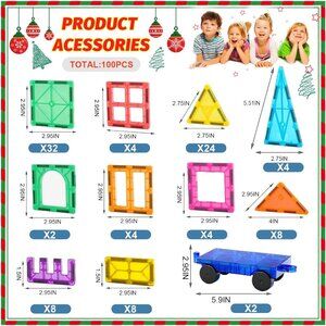 3D Beautiful Magnetic Tiles Our magnetic building tiles for 3+ year old have up to 100PCS.No limitations so children can construct whatever they want.Magnetic tiles blocks are available in a wide variety of different shapes and translucent colors reflect charming sun light and come with 2 cars!Perfect magnetic building toys gifts for 3 4 5 6 year old boys girls!