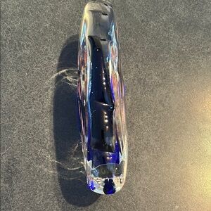 Murano Art Glass Aquarium Fish Tank Paperweight. Art glass Aquarium fish tank paperweight, in clear crystal with cobalt blue sommerso accents and several multi colored fish