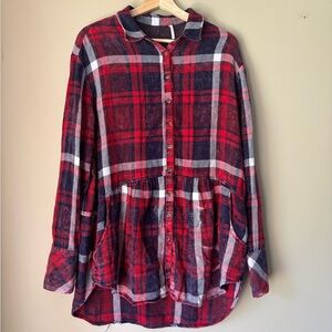 Free People Red and Black Plaid Blouse