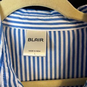 Blair button down blouse. Size Large. Blue and white striped, embroidered bees and flowers, 3/4 sleeve. Lightweight and cute for summer. Excellent condition. Cross posted
